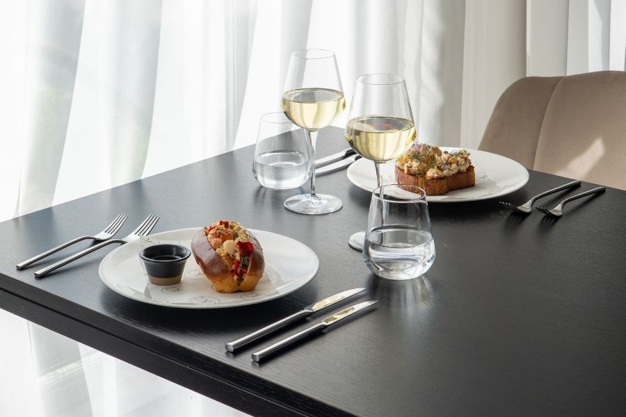 Indulge in a delicious lunch surrounded by original artworks in a calm, light-filled setting.