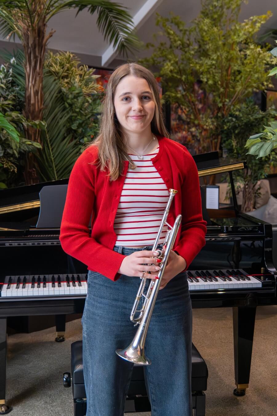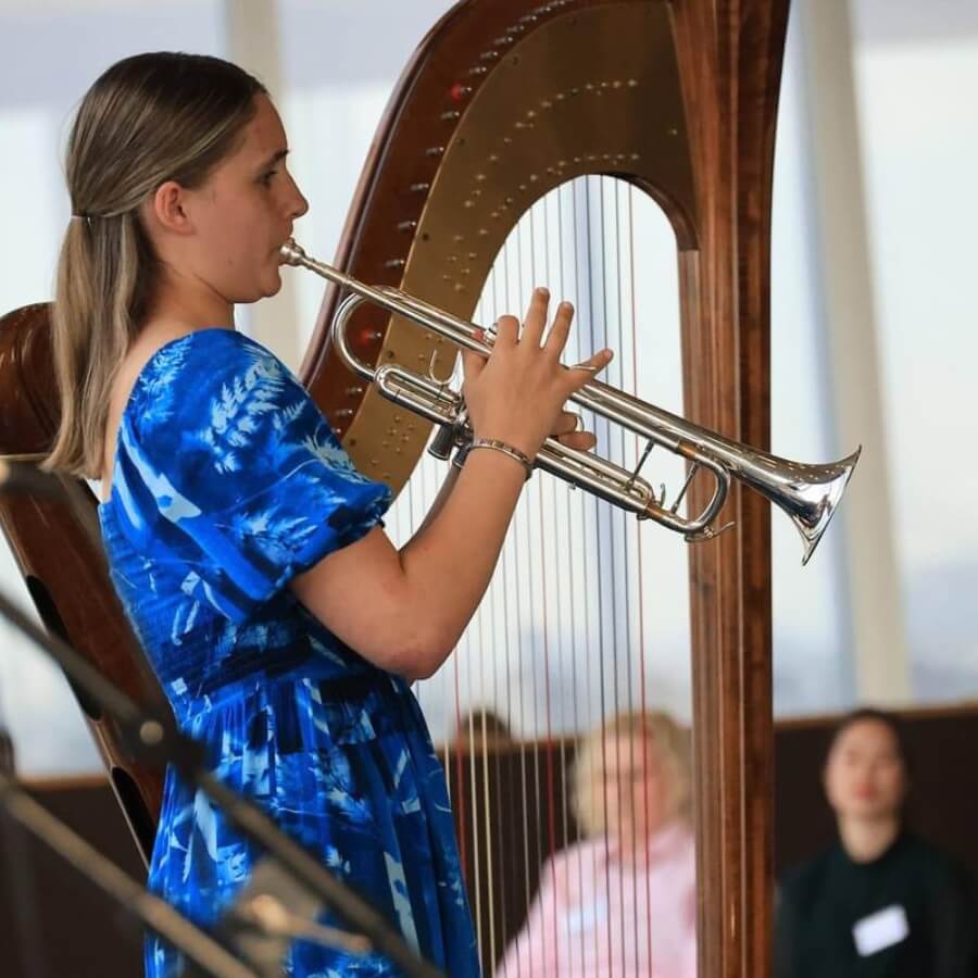 I was 7 when I began playing, my first teacher, Huw Jones, was a brass teacher at my Mum’s school and a family friend, and he gave me a cornet. He then started teaching me, as my dad complained that I sounded like an elephant that needed taming! From there, I continued my journey, taking lessons from Peter Greenway at primary school and from Steve Stuart at secondary school. In year 8, I joined the Pembrokeshire music service ensembles. During COVID, I was lucky that my teacher at the time was set up for online teaching, and I continued having lessons and being part of online ensembles throughout. At 13, I auditioned for the National Children’s Brass Band of Great Britain, not expecting to be accepted, but I was thrilled when I did! I then progressed the next year into the National Youth Brass Band of Great Britain. Alongside this, I played for Pontarddulais Town Band and then the Goodwick Brass Band. At 16, I auditioned for the National Youth Orchestra on trumpet and completed 6 courses with them, including 3 BBC Proms and 1 as principal trumpet. I am currently a member of the National Youth Brass Band of Wales and the National Youth Orchestra of Wales and study at the Royal Academy of Music in London.