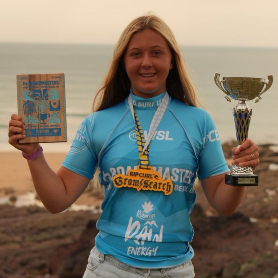 The Boardmasters Juniors 2025 was another big one for Josie, and her first time in the event. Twenty-four selected UK Junior girls do battle at Fistral Beach, the event runs alongside a World Surf League qualifying Series event. Josie thrived in this environment, feeding off the high standard. A very busy Friday saw her compete in three heats in a day, mostly dominating and negotiating a tough heat draw, but importantly, making it to Finals day, giving herself a chance at the title.