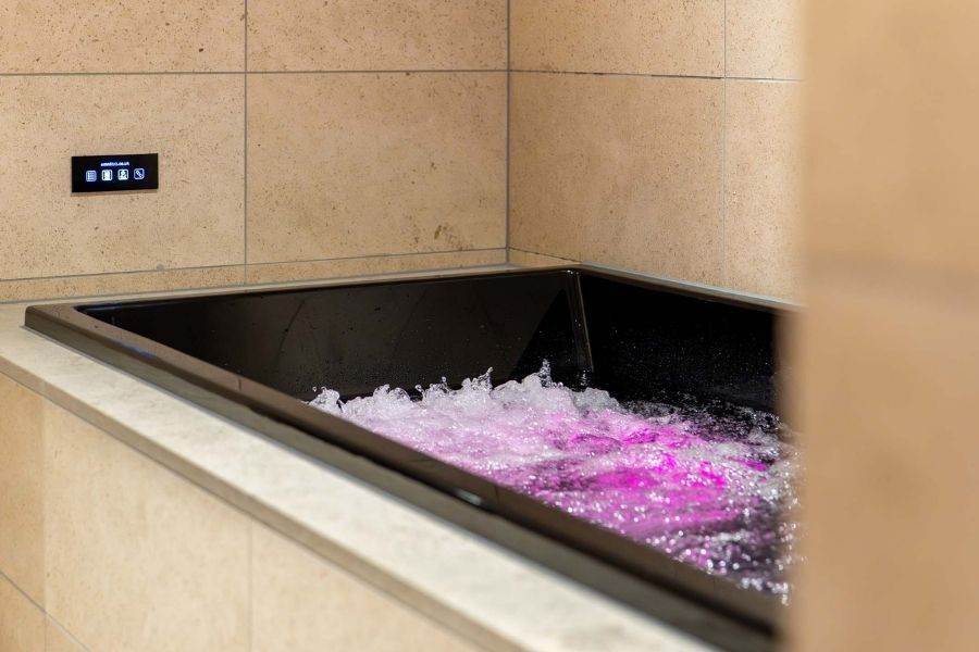 Our spa is perfect for couples, but can also accommodate up to four people. One-hour slots will be bookable online shortly.